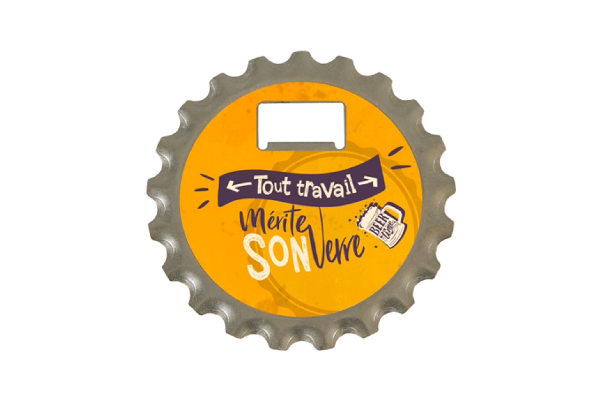 Marcus, décapsuleur, sous-bock, magnet. Décor : "Tout