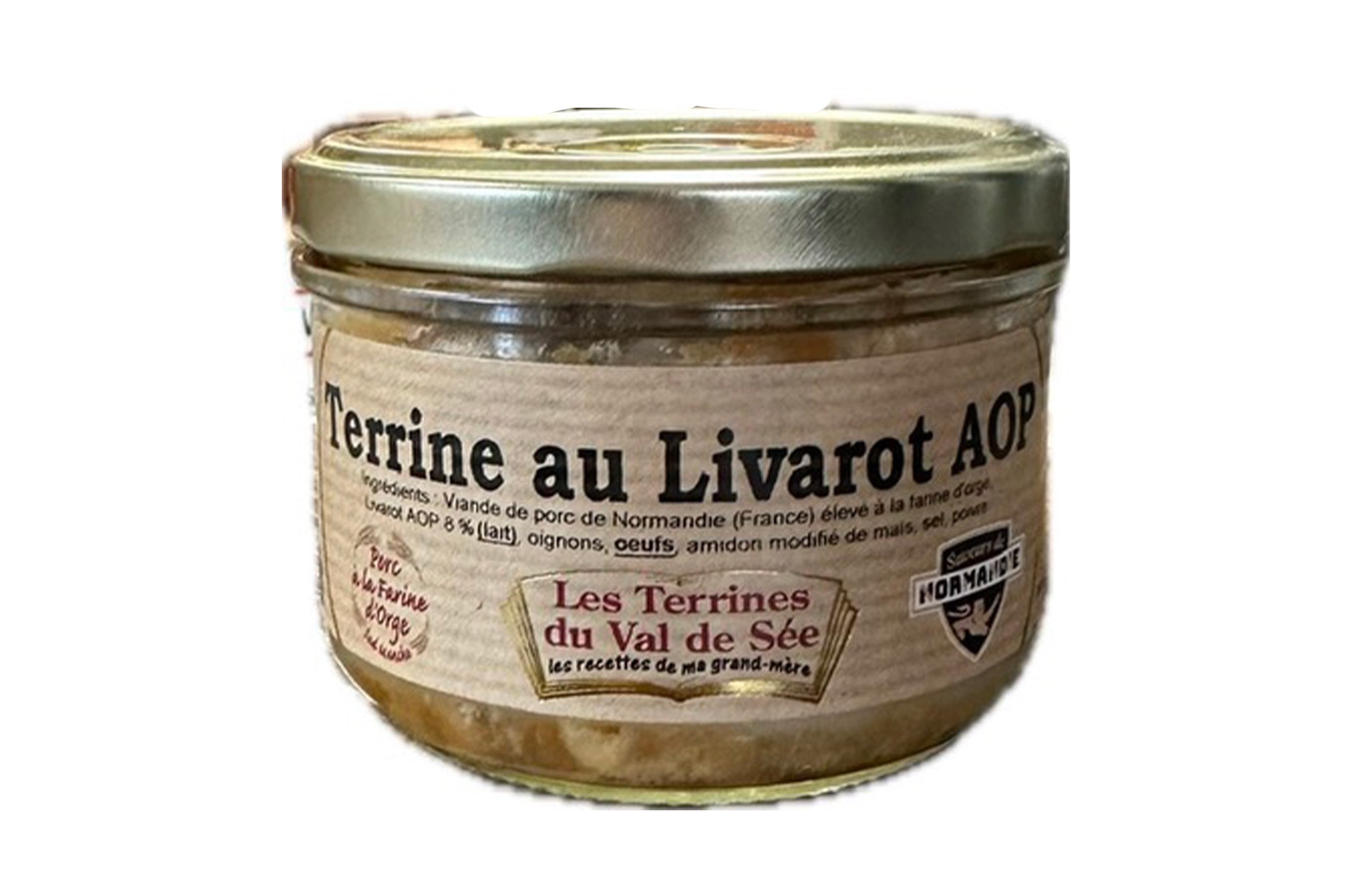 Ingrédients : Viande et foie de porc de Normandie (France) élevé à la farine d’orge, LIVAROT AOP 8%, Lait oignons, OEUFS, amidon modifié de maïs, sel, poivre.