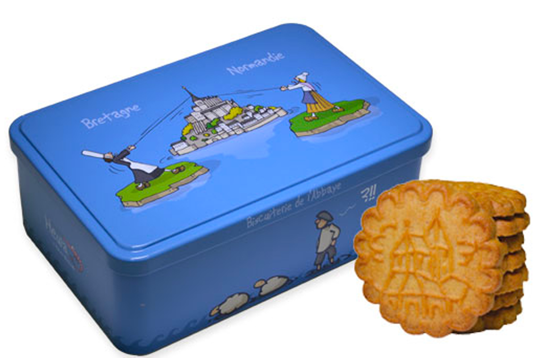 Boîte à sucre métallique décorée contenant les traditionnels Sablés de l’Abbaye. Le Sablé de l’Abbaye est le sablé traditionnel créé en 1941 par Georges Lautour, boulanger à Lonlay l’Abbaye… En conservant la même recette qu’autrefois et la même qualité des matières premières, retrouvez les saveurs authentiques de la Normandie dans le Sablé de l’Abbaye.Boîte contenant 10 sachets de 5 sablés au beurre d’Isigny A.O.P.