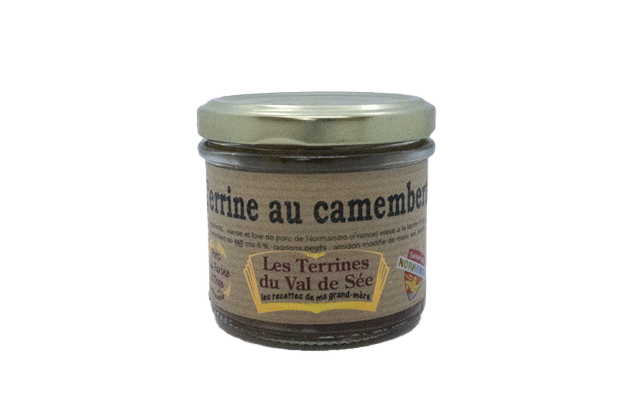 Ingrédients : Viande et foie de porc de Normandie (France) élevé à la farine d’orge, camembert au LAIT cru 8%, oignons, OEUFS, amidon modifié de maïs, sel, poivre.